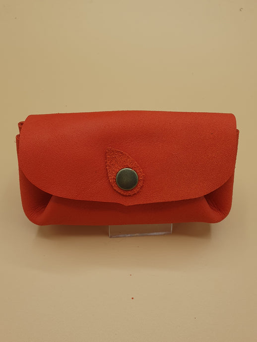 Porte monnaie artisanal en cuir jaune tacheté rouge et vert